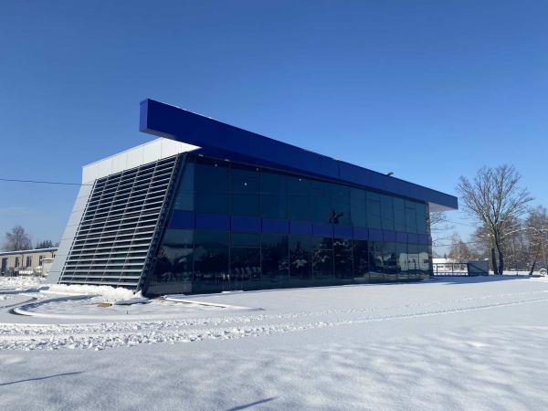 Naszym kolejnym wyborem były szyby barwione w masie PrivaBlue, dające wdzięczny, nietypowy efekt. Z kolei między fasadą, piętrem oraz nad fasadami zastosowaliśmy płyty kompozytowe, białe i szare. Po lewej stronie do fasady zostały dokręcone aluminiowe osłony przeciwsłoneczne. Dlaczego na nie postawiliśmy? Odpowiedź jest banalnie prosta. W ten sposób niezaprzeczalnie zwiększyliśmy komfort i wygodę, jaki będą odczuwać osoby korzystające z budynku.