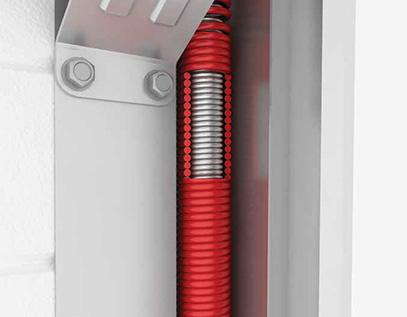 Segmentové brány majú na oboch stranách mechanizmus pozinkovaných torzných pružín s ochranou proti prasknutiu pružiny. V prípade, ak by pružina náhodou praskla, bezpečnostný prvok okamžite zastaví bránu, aby nekontrolovane nespadla. Tento mechanizmus je určený na montáž vo veľkých garážových otvoroch s vyšším prekladom.